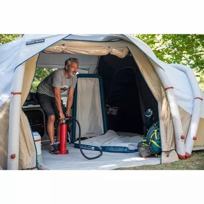 – It is very important to inflate at an average pressure for your comfort and to prolong the life of your mat. When you sit on an inflated mat, you should feel the floor close to your hips. When you lie down, the air pressure inside the mat will envelop your body and offer you unparalleled comfort. You can use a 5.2 – 7 L hand pump with integrated pressure gauge: recommended pressure level is 0.3 – 0.5 PSI.